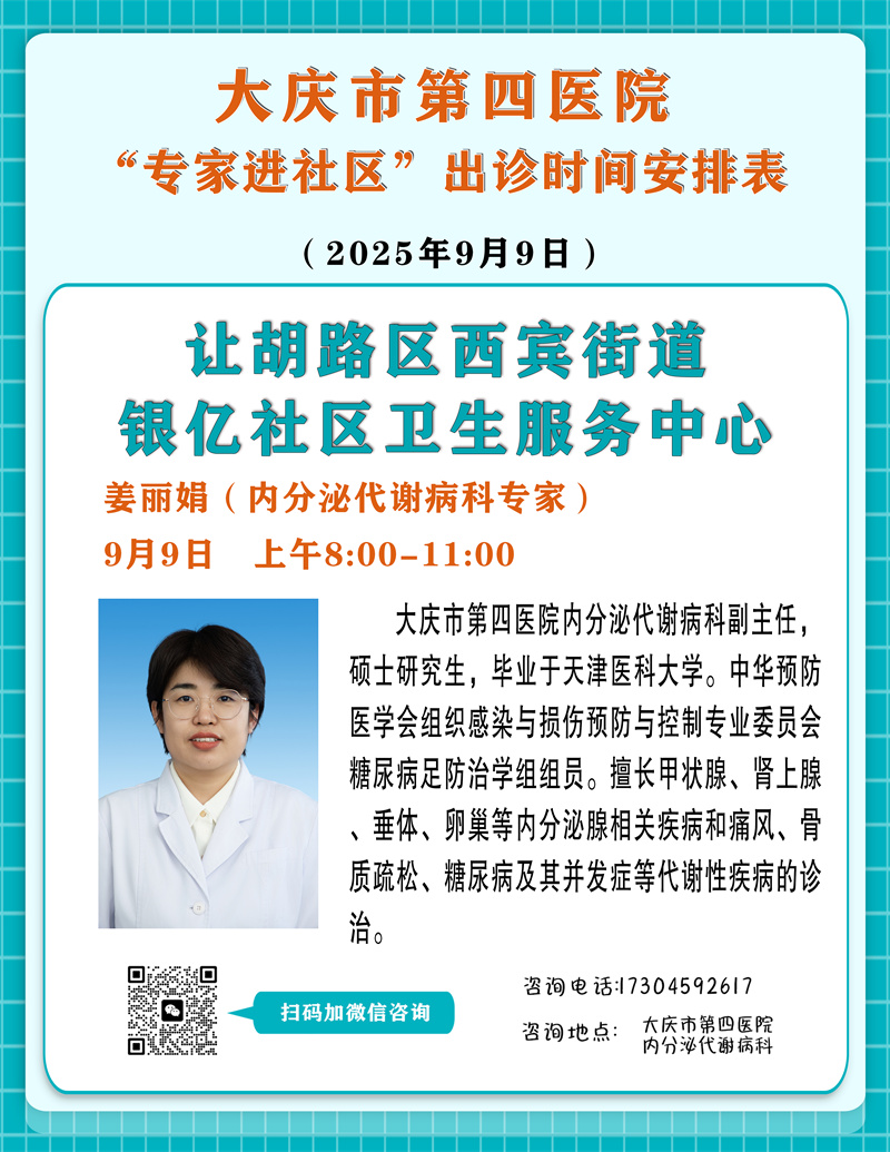 为了进一步提高基层医疗服务能力,提升社区居民的健康水平,大庆市第四医院派遣资深医疗专家在让胡路区西宾街道银亿社区卫生服务中心长期出诊,为社区居民提供一对一的健康咨询,并给予个性化的干预方案和健康指导。
