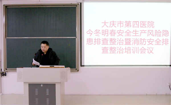 为深入贯彻落实全市今冬明春安全生产风险隐患排查整治及消防安全排查整治工作部署,切实筑牢医院安全生产防线,全面保障医患生命财产安全,1月14日下午,大庆市第四医院在教学楼一楼会议室召开了今冬明春安全生产风险隐患排查整治暨消防安全排查整治培训会。