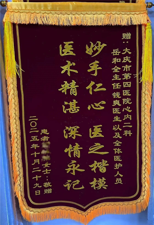 主治医生钱爽带领团队,为高奶奶制定了细致周密的治疗方案。他们密切监测着老人的每一项生命体征,不放过任何一丝细微的变化。 在科室人员不懈努力和精心照护下,高奶奶的心功能逐渐改善,心律日趋稳定,全身状况一天天好转,生命体征也恢复平稳,最终达到出院回家静养的标准。出院时,家属将一面承载着无限谢意的锦旗,郑重地送到了钱爽医生及心内二科全体医护人员手中,以表达对他们深深的谢意。